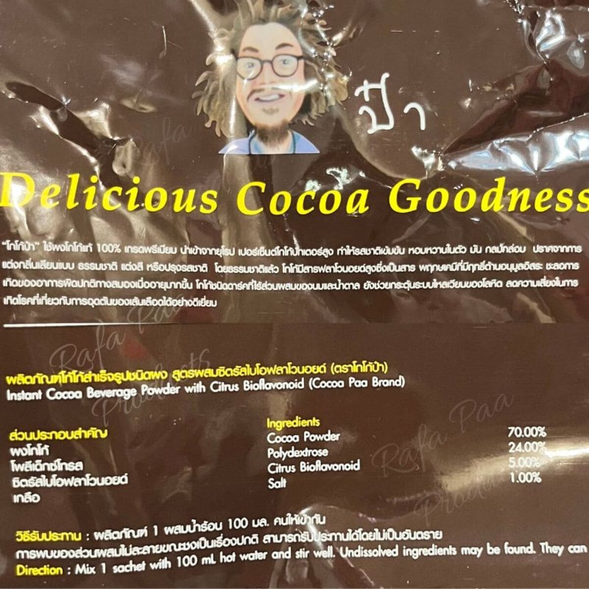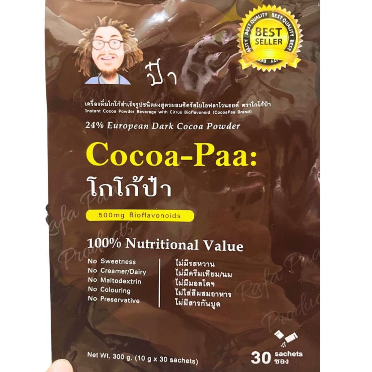 ผลิตภัณฑ์นี้เริ่มขึ้นจาก ต้องการปรับปรุงหลอดเลือดในผู้ป่วยโรคเบาหวานที่มีอาการจี๊ด ๆ ในหลอดเลือด และถูกบอกว่า…โรคนี้รักษาไม่หายต้องปล่อยไปตามยถากรรม แต่หลังจากแนะนำให้ผู้ที่มีอาการไปหาซื้อโกโก้กินเองจนอาการหายดี จึงคิดทำขึ้นเนื่องจากเห็นว่าที่ขายกันอยู่ราคาสูงเกินไป และมีเปอร์เซ็นต์ของโกโก้และฟลาโวนอยด์ต่ำไป โกโก้ป๋ามีสารฟลาโวนอยด์สูงถึง 98%