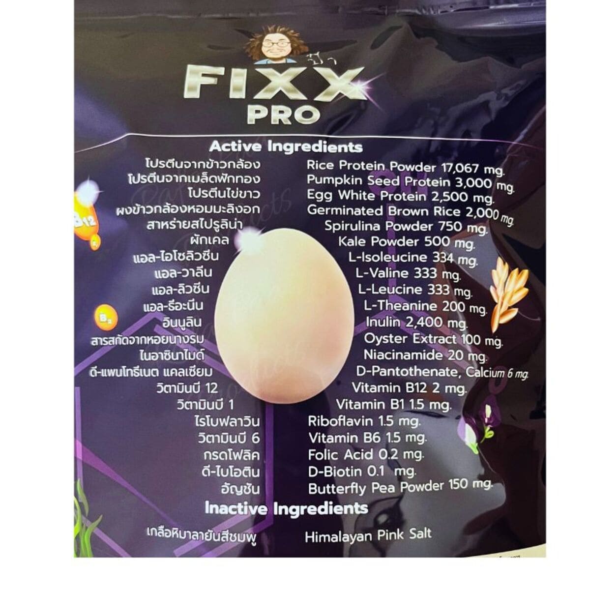 Fixx Pro 1 ซอง ให้ปริมาณโปรตีนสุทธิ 20 กรัม ซึ่งสามารถรับประทานร่วมกับมื้ออาหารได้ถ้าคิดว่าในมื้อนั้นคุณได้รับโปรตีนไม่เพียงพอและสามารถรับประทานได้ทุกเพศทุกวัย