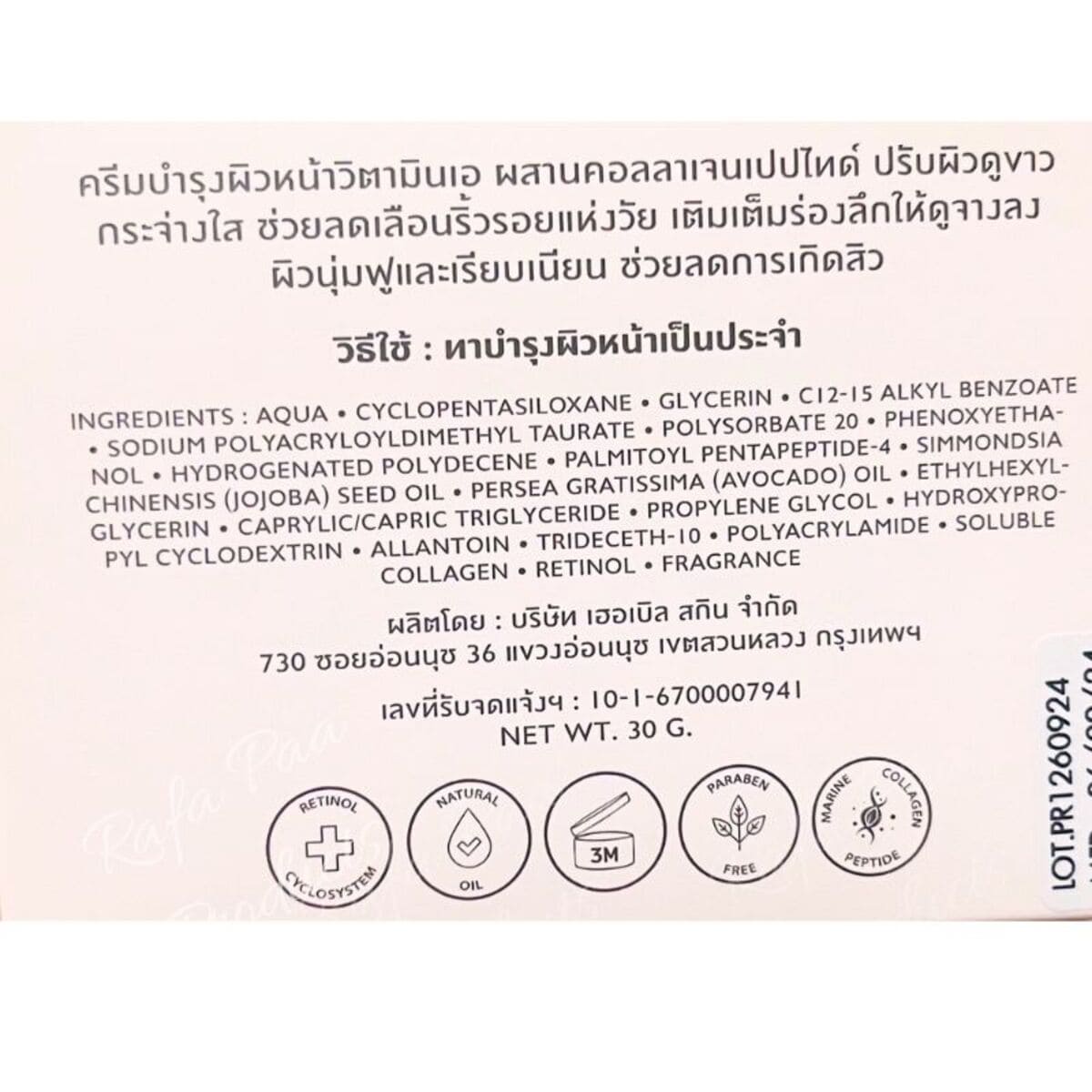 วิธีใช้ : ทาบำรุงผิวหน้าเช้าและก่อนนอน